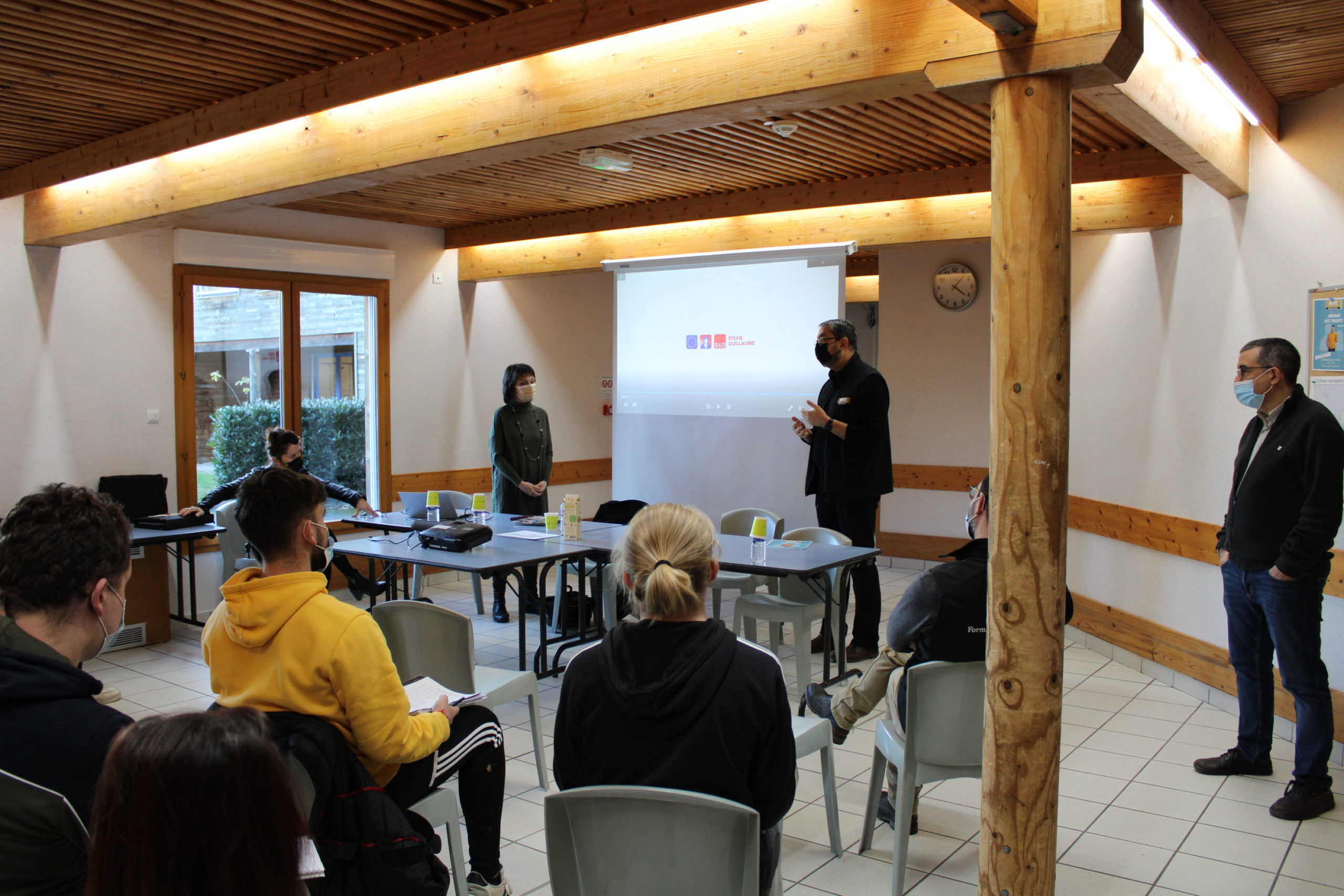Sylvie Guillaume, députée européenne s’est déplacée lors de l’inauguration de la plaque du label européen Euroscol. A cette occasion, elle a pu répondre aux questions des jeunes de la MFR, chaque filière étant représentée. Leurs préoccupations principales portaient , en autre, sur la gestion de la situation sanitaire sur le plan européen, son rôle de parlementaire et l’organisation du travail dans les différentes institutions européennes, les migrations européennes, les conditions et possibilités d’études et de travail dans un pays étranger. Mme Guillaume a su répondre avec beaucoup de bienveillance et de clarté à leurs interrogations. Les jeunes ont ensuite retransmis à leur filière respective les éléments de réponse apportés.